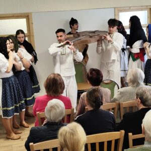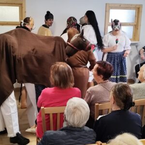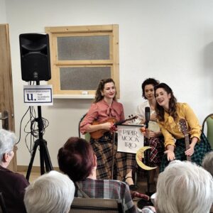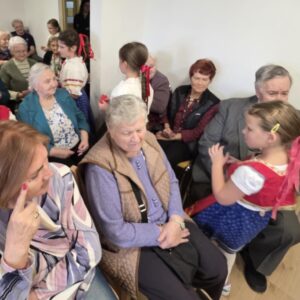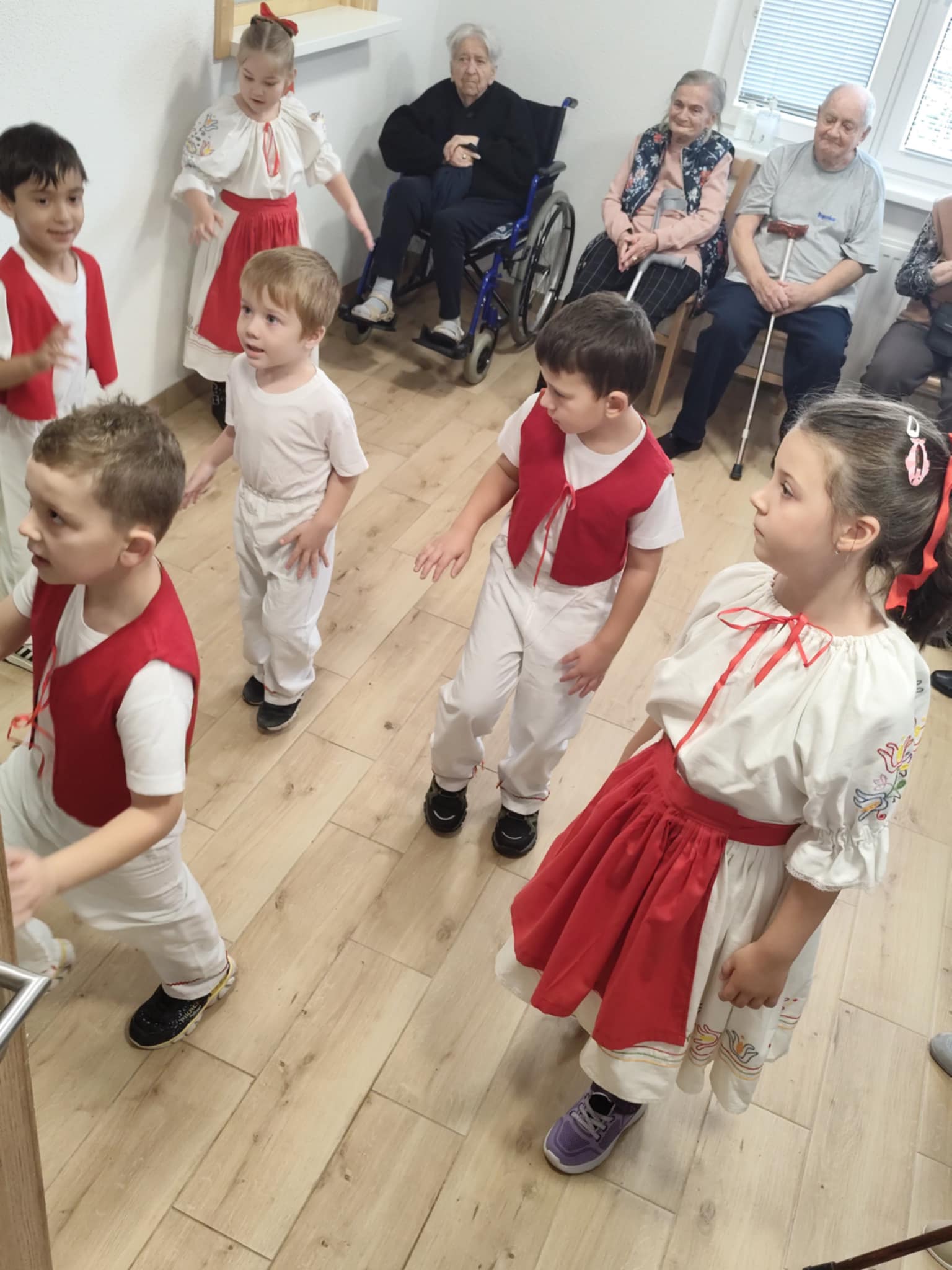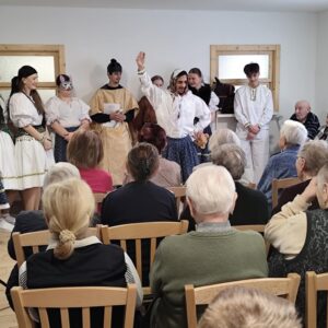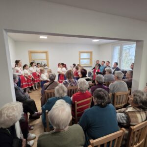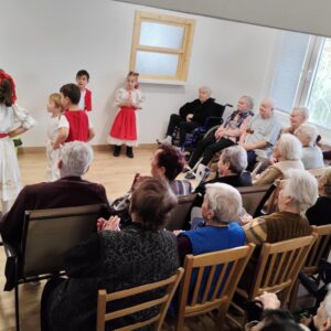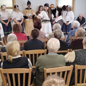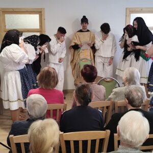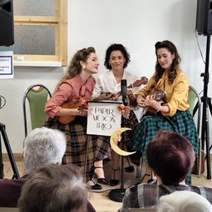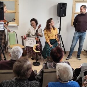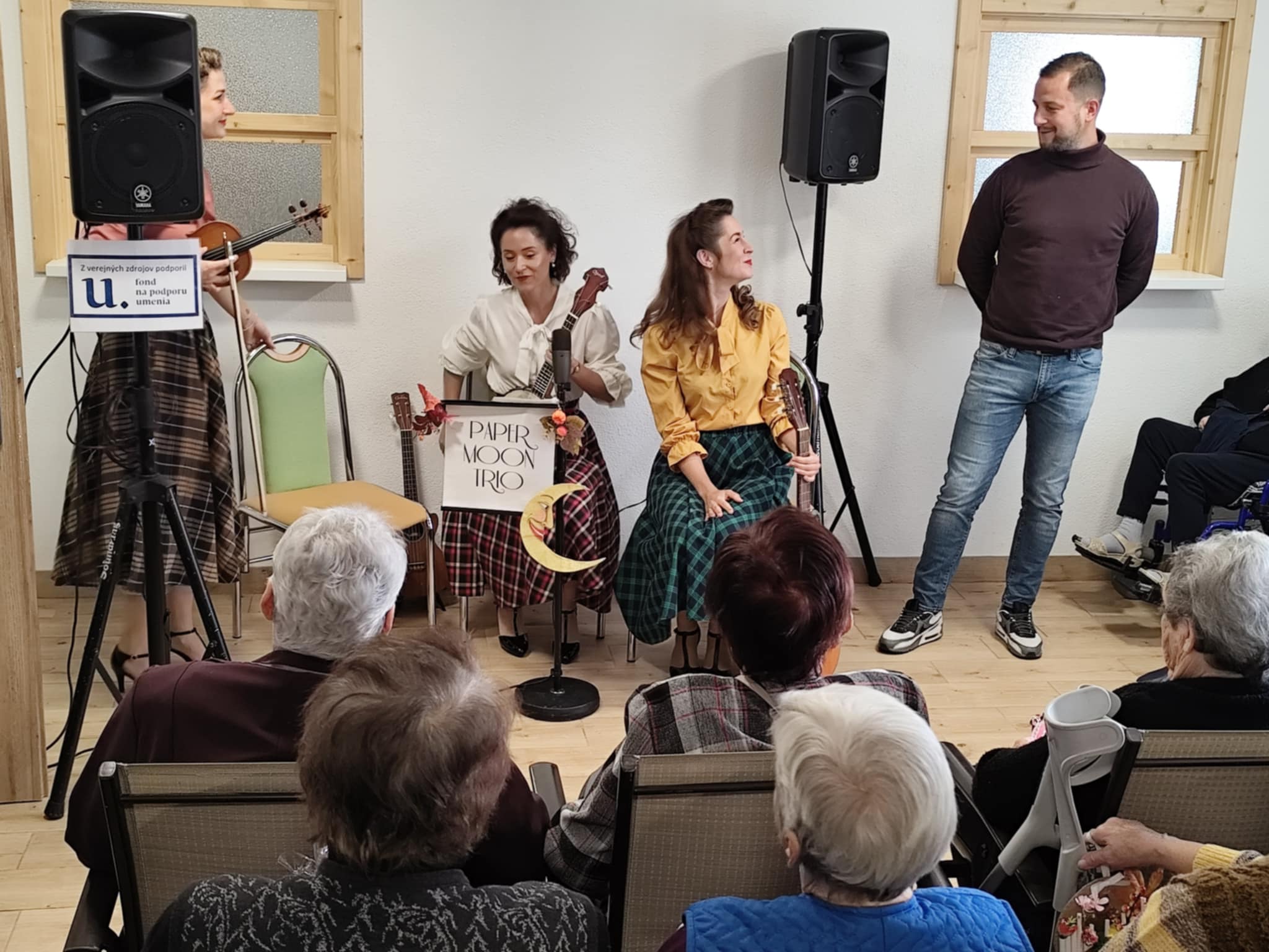 V stredu 15. októbra 2025 našich prijímateľov sociálnych služieb pri príležitosti Októbra – mesiaca úcty k starším potešili hneď dve vystúpenia – ženského speváckeho tria Paper Moon Trio z Bratislavy a vystúpenie detí zo Spojenej školy internátnej v Lučenci. Paper Moon Trio nám zaspievalo piesne z 20. až 40. rokov 20. storočia a zahralo na husle, gitaru a ukulele. Krásne a kvalitné melódie, ktoré nesú v sebe závan starých dobrých čias, nás všetkých očarili a dostali do príjemnej nálady. Detičky zo Spojenej školy internátnej nás zase potešili svojim milým kultúrnym vystúpením