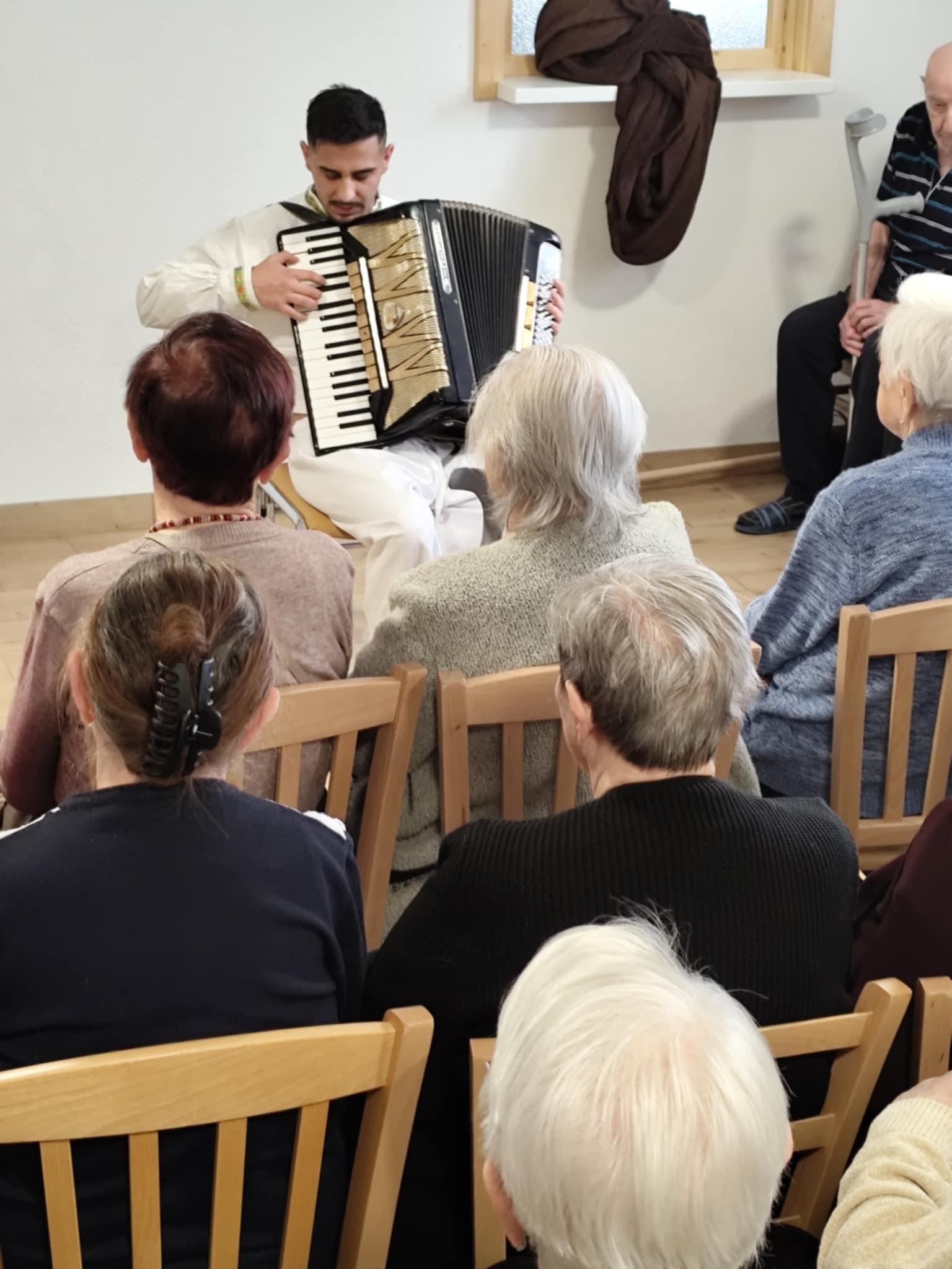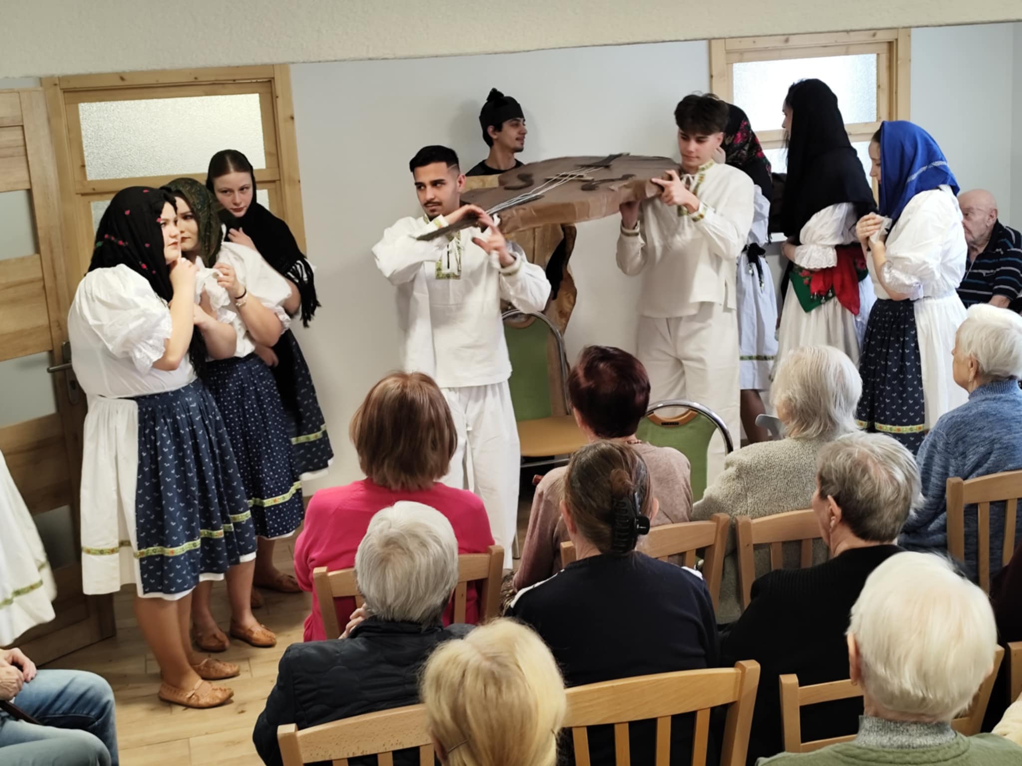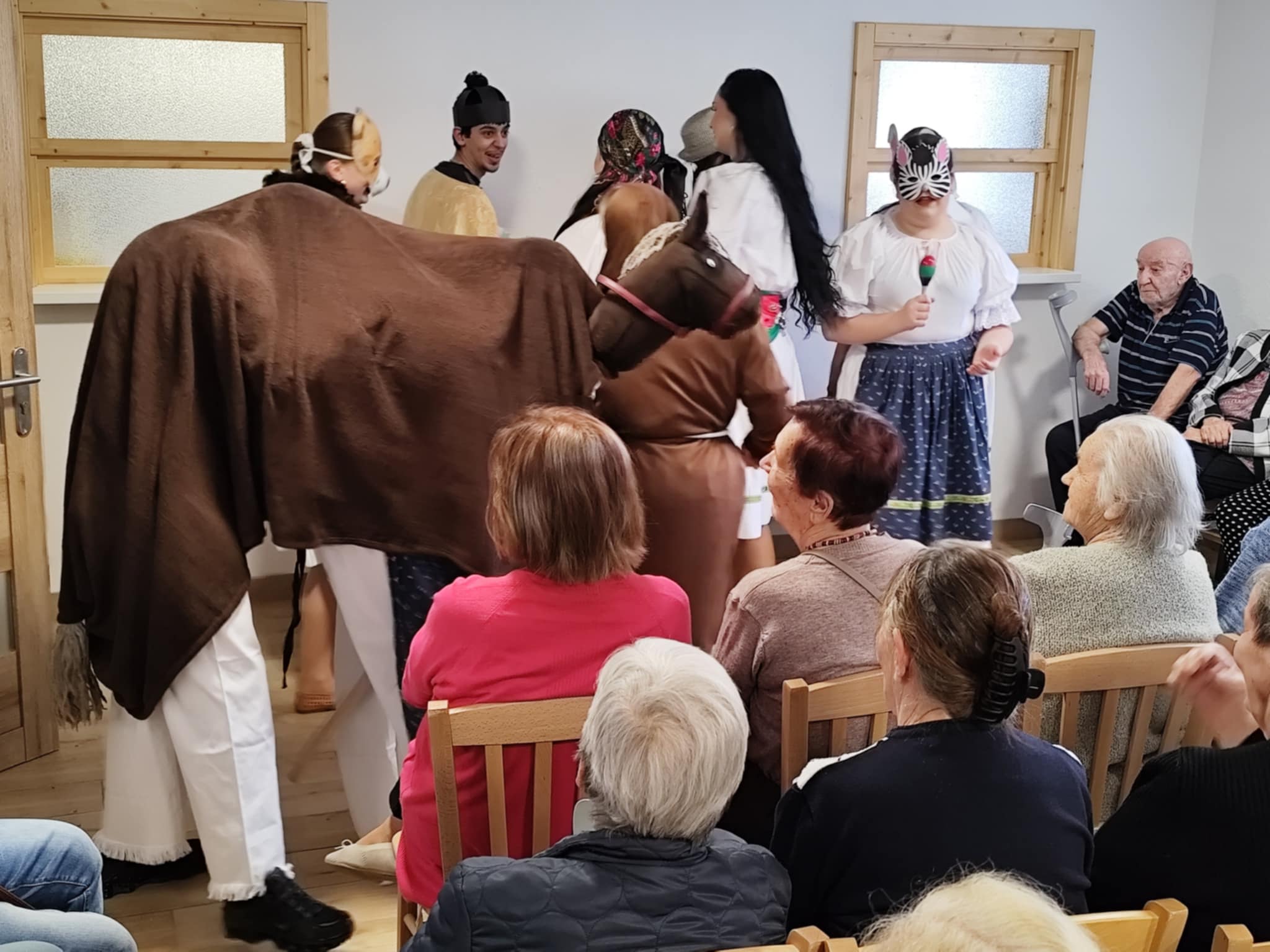 V stredu 15. októbra 2025 našich prijímateľov sociálnych služieb pri príležitosti Októbra – mesiaca úcty k starším potešili hneď dve vystúpenia – ženského speváckeho tria Paper Moon Trio z Bratislavy a vystúpenie detí zo Spojenej školy internátnej v Lučenci. Paper Moon Trio nám zaspievalo piesne z 20. až 40. rokov 20. storočia a zahralo na husle, gitaru a ukulele. Krásne a kvalitné melódie, ktoré nesú v sebe závan starých dobrých čias, nás všetkých očarili a dostali do príjemnej nálady. Detičky zo Spojenej školy internátnej nás zase potešili svojim milým kultúrnym vystúpením