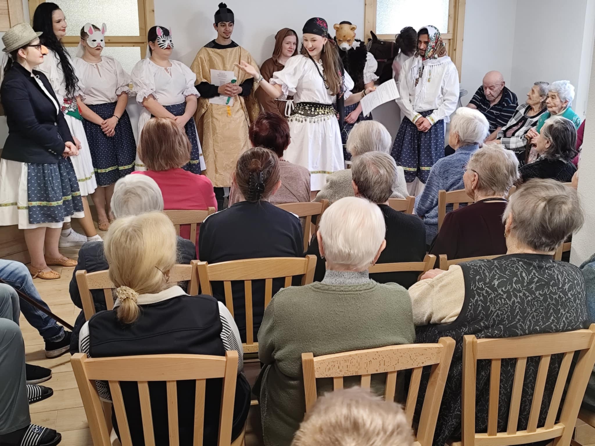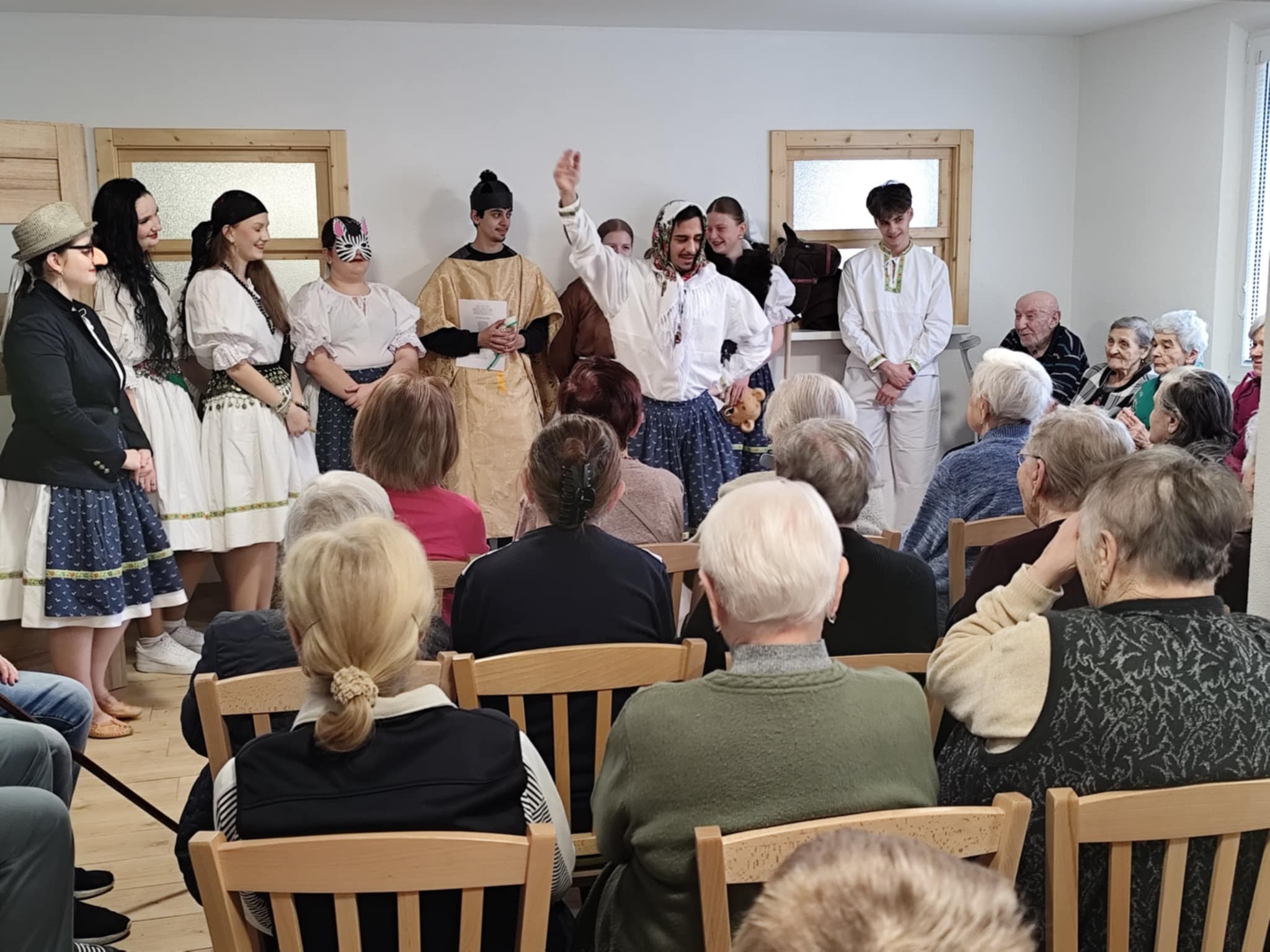 Obdobie od Troch kráľov do Popolcovej stredy sa nazýva fašiangy. My sme si pripomenuli lúčenie s týmto obdobím v utorok 17. februára 2026, kedy k nám zavítali študenti Strednej zdravotníckej školy v Lučenci so svojím programom. Ukázali nám oslavu fašiangových sviatkov a poslednej muziky spojenej s pochovávaním basy. Pri tomto symbolickom pohrebe miestni občania v prestrojení za farára a jeho pomocníkov uskutočňujú obrad, pri ktorom je veľa plaču, smiechu a zábavy všetkých prítomných. Keď je basa pochovaná, môže začať pôst.